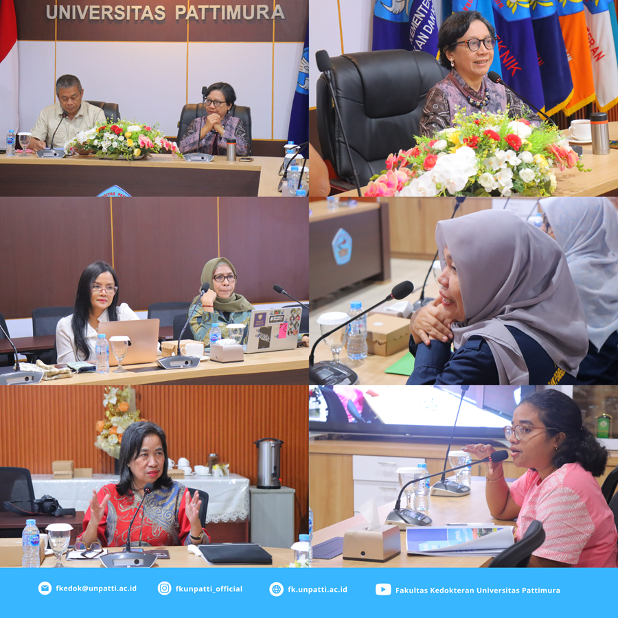 Hadir mendampingi Wakil Rektor Bidang Akademik adalah dosen dari Fakultas Kedokteran UNPATTI, Dr. dr. Bertha Jean Que, Sp.S., M.Kes dan Grace Latuheru, M.Psi., Psikolog. Sedangkan tamu lainnya yang juga hadir dalam FGD ini adalah perwakilan dari Dinkes Provinsi Maluku dan Poltekkes Kemenkes Maluku.