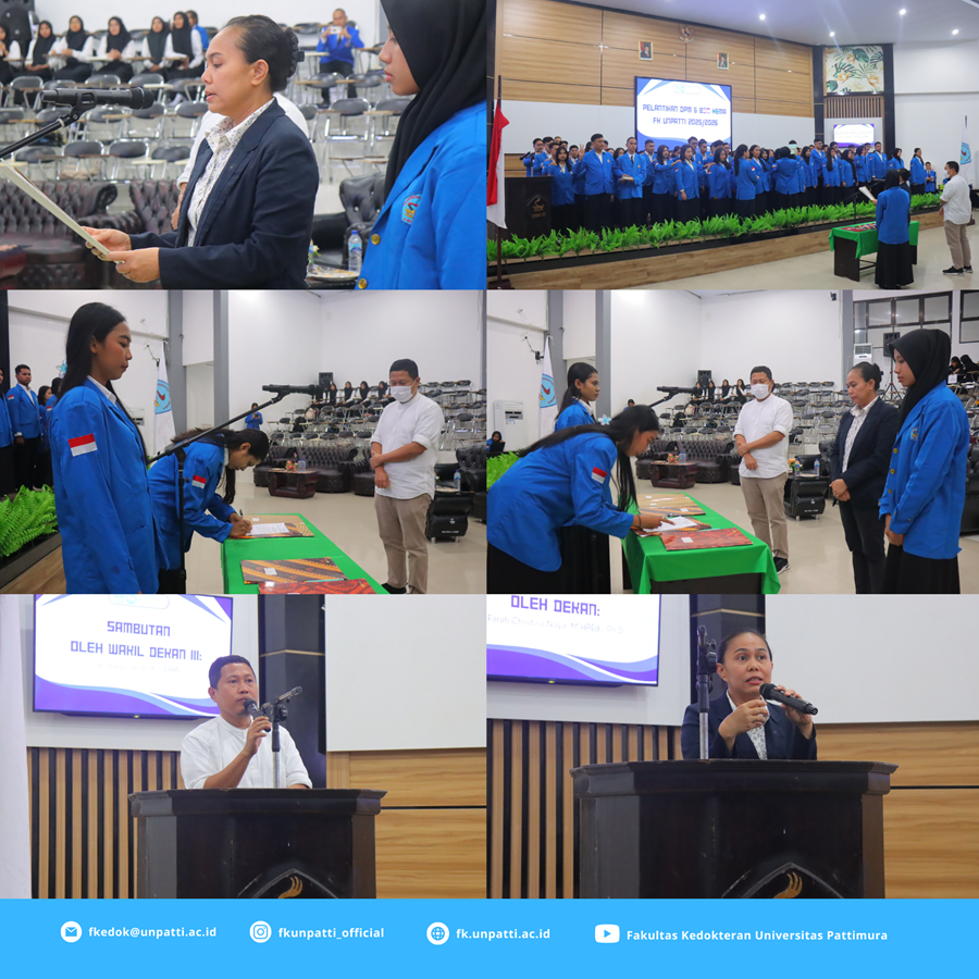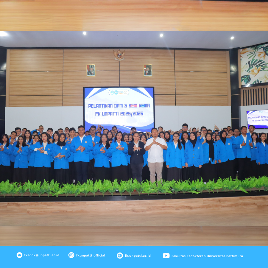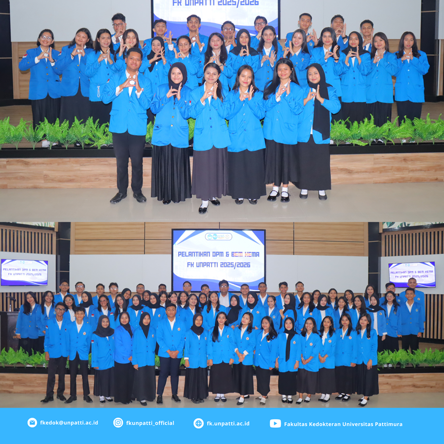 Dekan Fakultas Kedokteran Universitas Pattimura (FK UNPATTI), dr. Farah Christina Noya, M.HPEd., Ph.D didampingi Wakil Dekan Bidang Kemahasiswaan dan Alumni, dr. Irwan, Sp.JP (K), FIHA melantik Pengurus Dewan Perwakilan Mahasiswa @dpm.fkunpatti dan Badan Eksekutif Mahasiswa @bemfkunpatti FK UNPATTI periode 2025-2026 pada Sabtu (20/09/2025) bertempat di Aula Lantai 3.