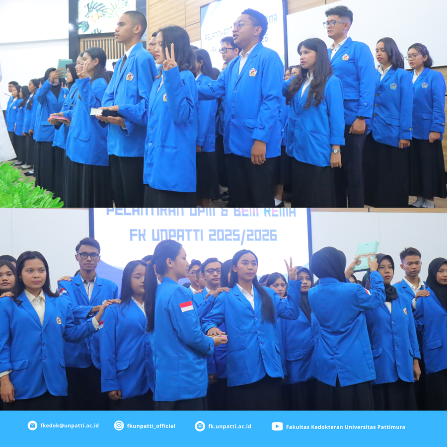 Dekan Fakultas Kedokteran Universitas Pattimura (FK UNPATTI), dr. Farah Christina Noya, M.HPEd., Ph.D didampingi Wakil Dekan Bidang Kemahasiswaan dan Alumni, dr. Irwan, Sp.JP (K), FIHA melantik Pengurus Dewan Perwakilan Mahasiswa @dpm.fkunpatti dan Badan Eksekutif Mahasiswa @bemfkunpatti FK UNPATTI periode 2025-2026 pada Sabtu (20/09/2025) bertempat di Aula Lantai 3.