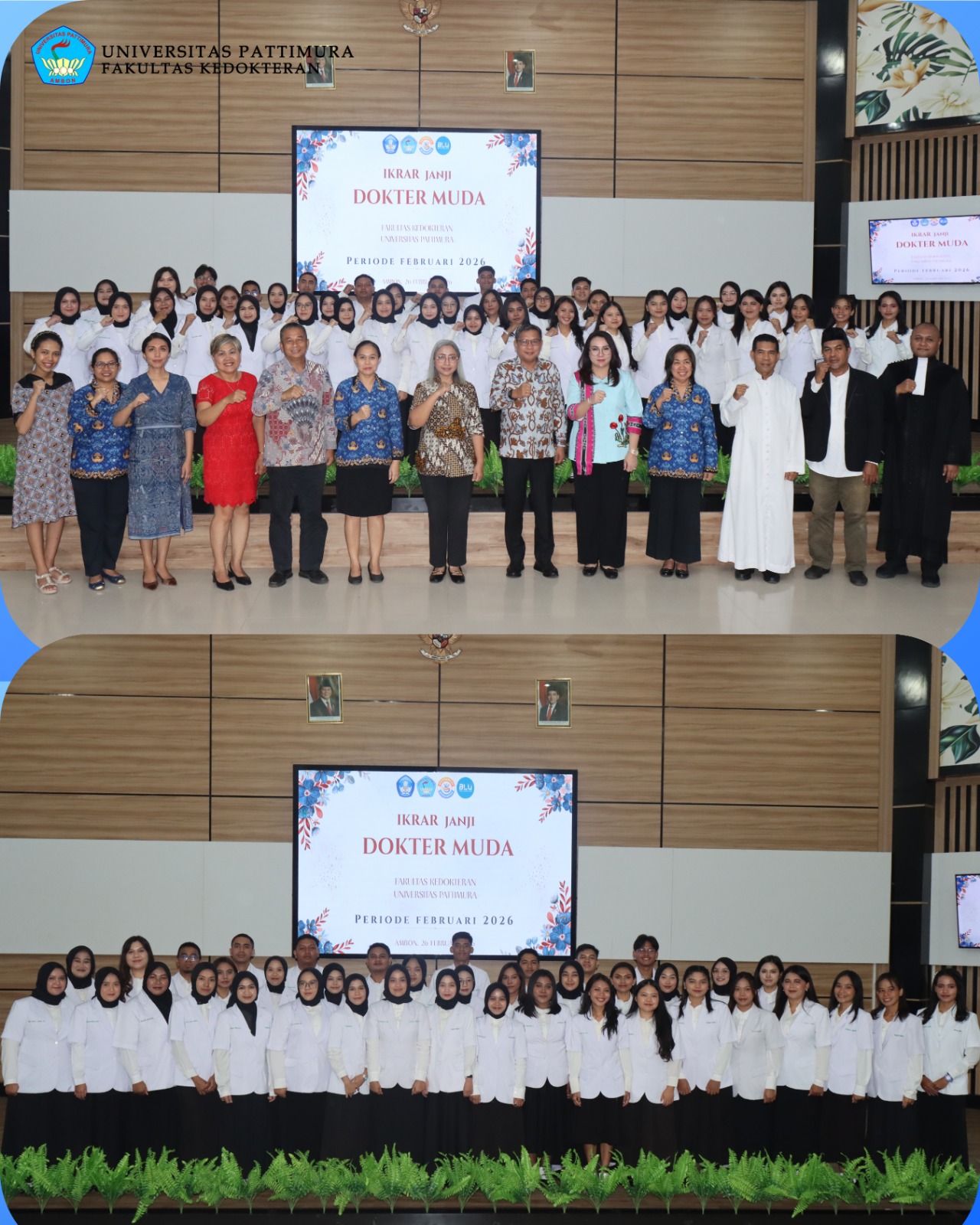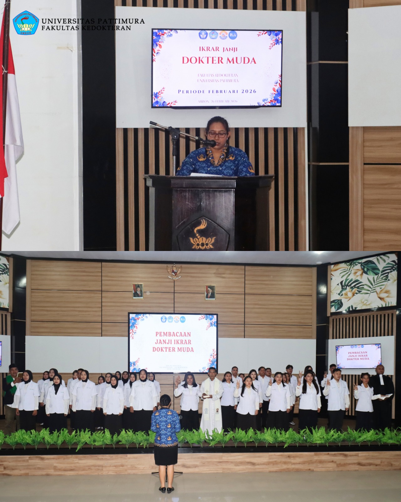 Fakultas Kedokteran Universitas Pattimura (FK Unpatti) resmi melantik 40 Dokter Muda periode Februari 2026 melalui prosesi Janji Dokter Muda yang berlangsung khidmat pada Kamis (26/02/2026). Kegiatan ini menjadi momentum penting sebelum memasuki tahap pendidikan profesi dokter (klink).