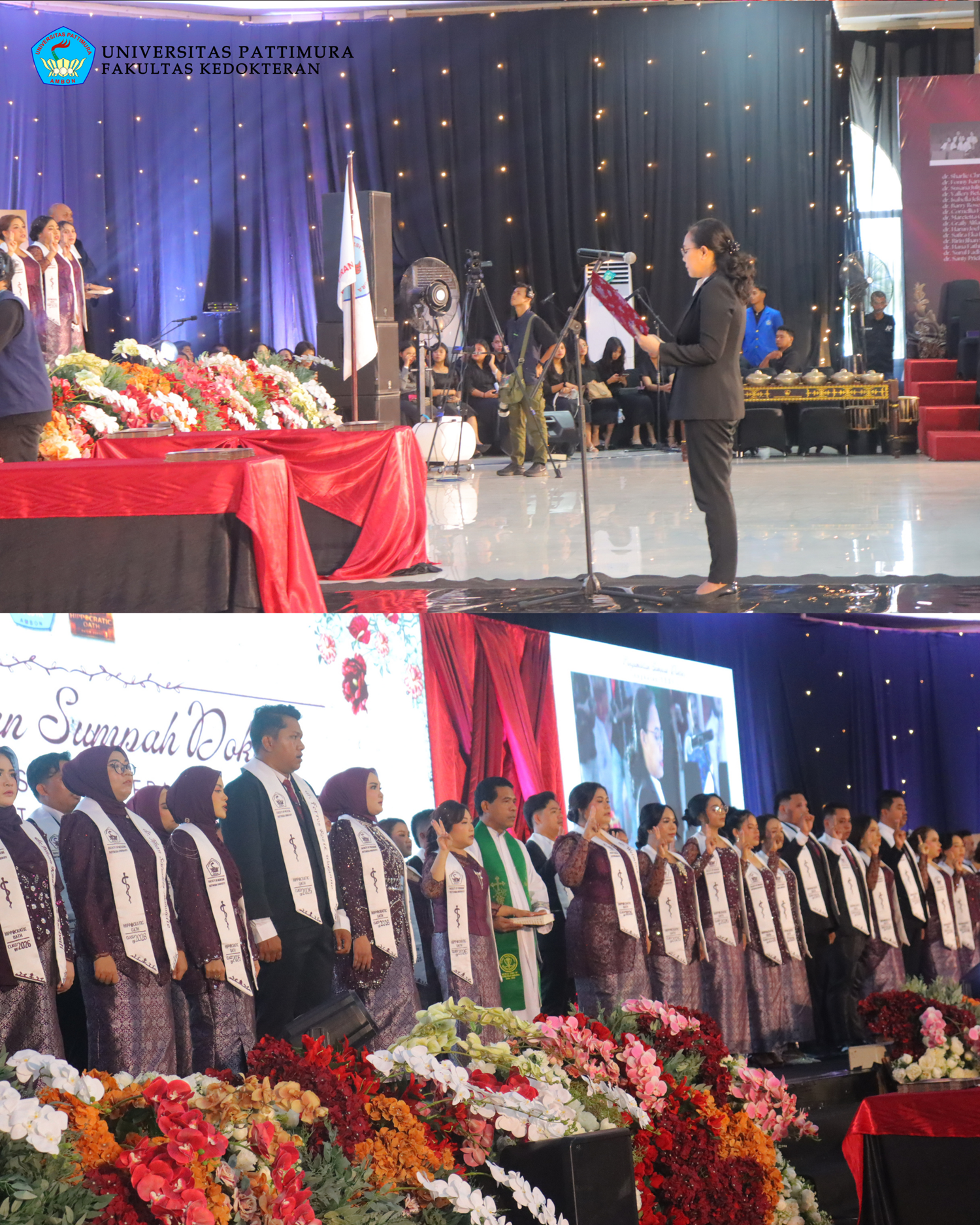 akultas Kedokteran Universitas Pattimura (FK Unpatti) menggelar acara Pengambilan Sumpah Dokter Angkatan XXXVII Periode Februari 2026 pada Rabu (05/02/2026) bertempat di Gedung Islamic Center, Waihaong, Kota Ambon.