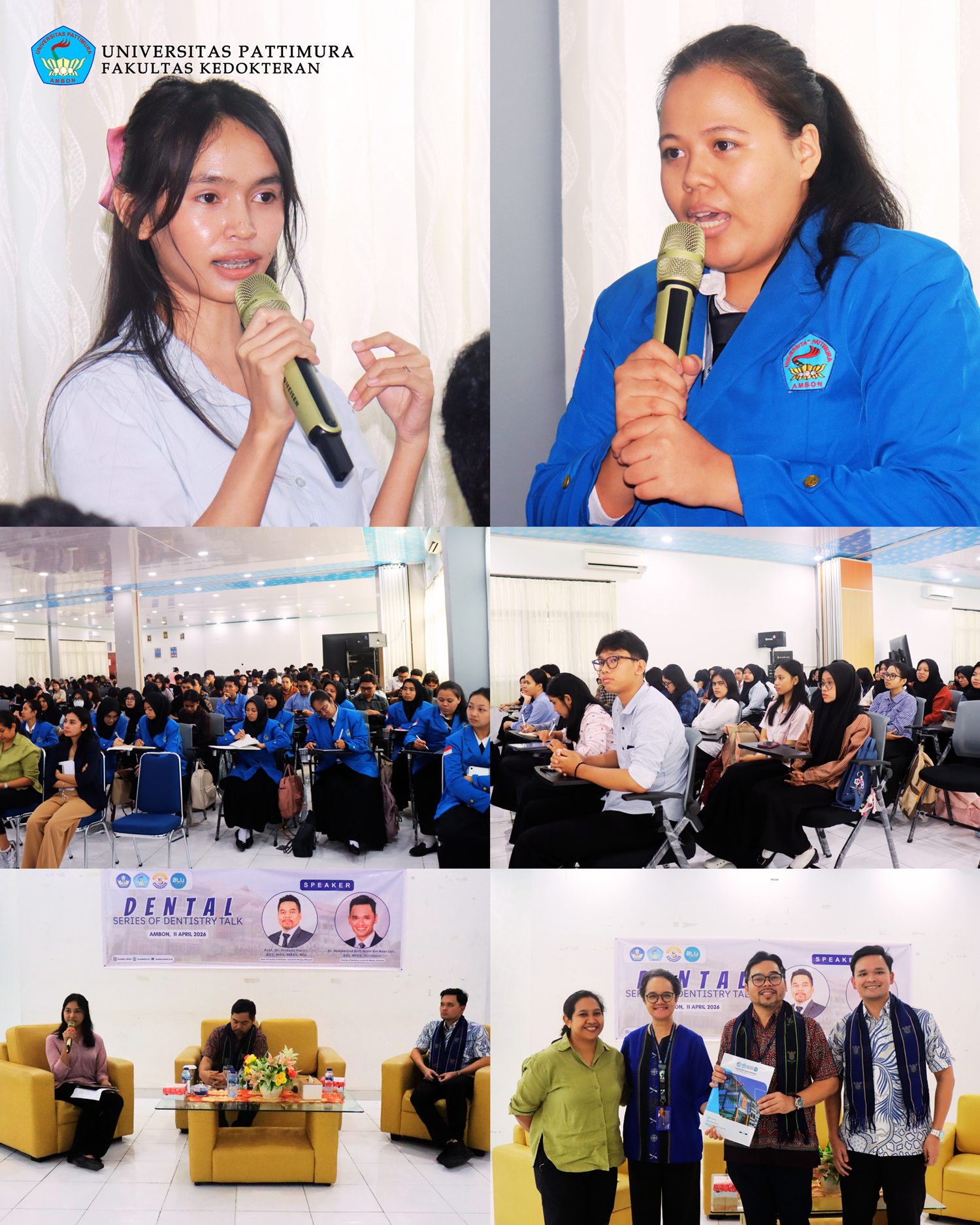 Kegiatan yang dibuka oleh Wakil Dekan Bidang Akademik FK Unpatti, dr. Laura B.S. Huwae, Sp.S., M.Kes ini berlangsung interaktif dengan penyampaian materi terkini di bidang kedokteran gigi, disertai sesi diskusi antara narasumber dan peserta.
