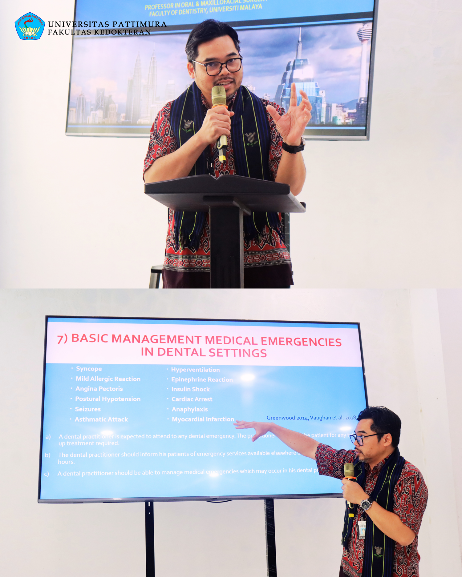 Kegiatan ini menghadirkan Dekan Fakultas Kedokteran Gigi Universitas Malaya, Malaysia, Prof. Dr. Firdaus Hariri, BDS, MDS, MBBS, MSc, bersama Dr. Muhammad Aliff Ikram Bin Noor Zari, BDS, MFDS, DClinDent, sebagai narasumber.