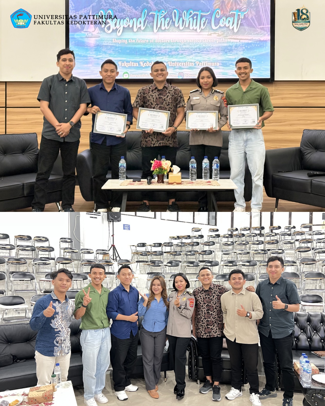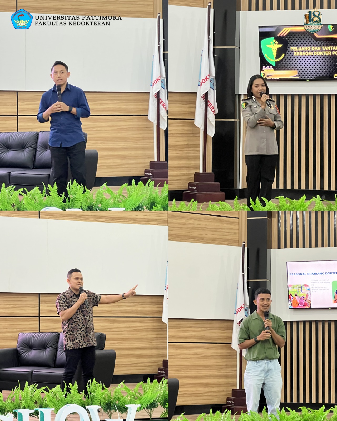 Kegiatan ini menghadirkan sejumlah dokter lulusan FK Unpatti yang telah berkiprah di berbagai bidang profesi, mulai dari pebisnis, akademisi, klinisi, dokter kepolisian, hingga penggiat media sosial. Narasumber yang hadir adalah dr. Marthen Y. Matakupan, MMH, dr. Louis Max Alfer Mailuhu, Sp.N., FINA, AIFO (K), IPTU dr. Egenesia Merlyn Suarlembit, M.H, serta dr. Ikramsyah Maulana.